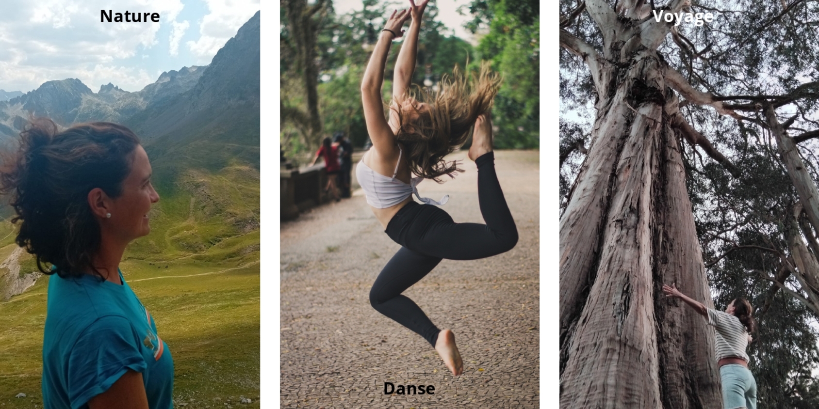 Ma pratique du Pilates s’inspire de la danse, qui nourrit la fluidité du mouvement, du voyage, qui ouvre le regard et le corps, et de la nature, source d’équilibre, de respiration et d’harmonie.